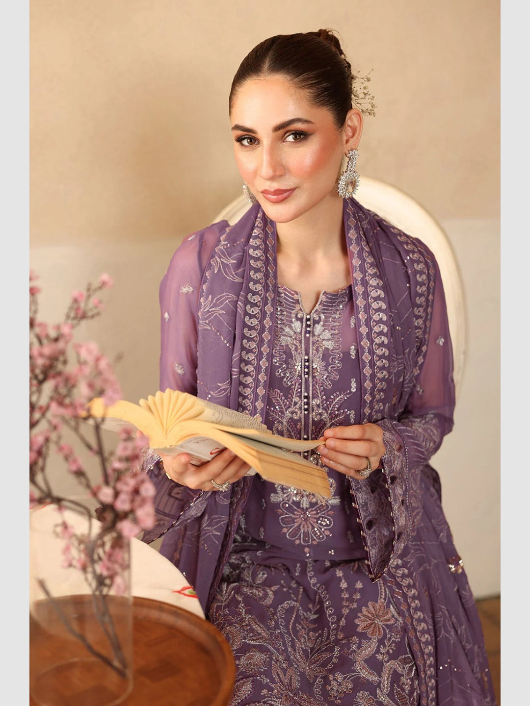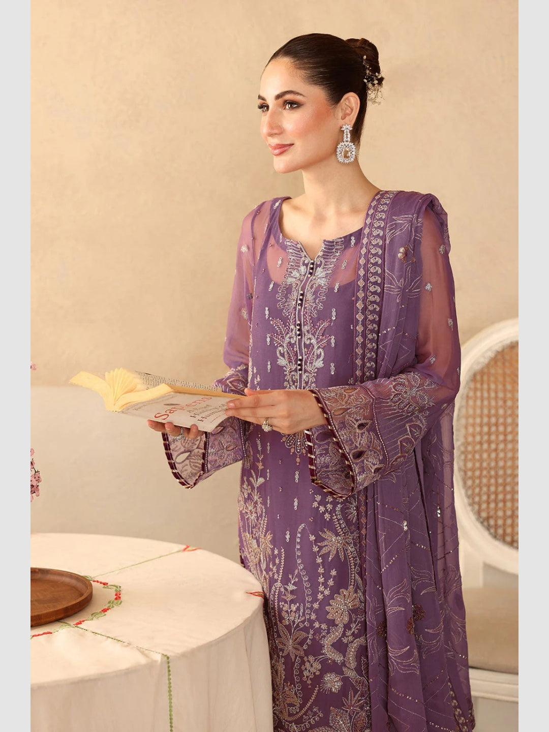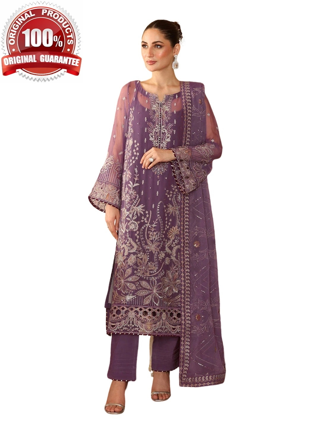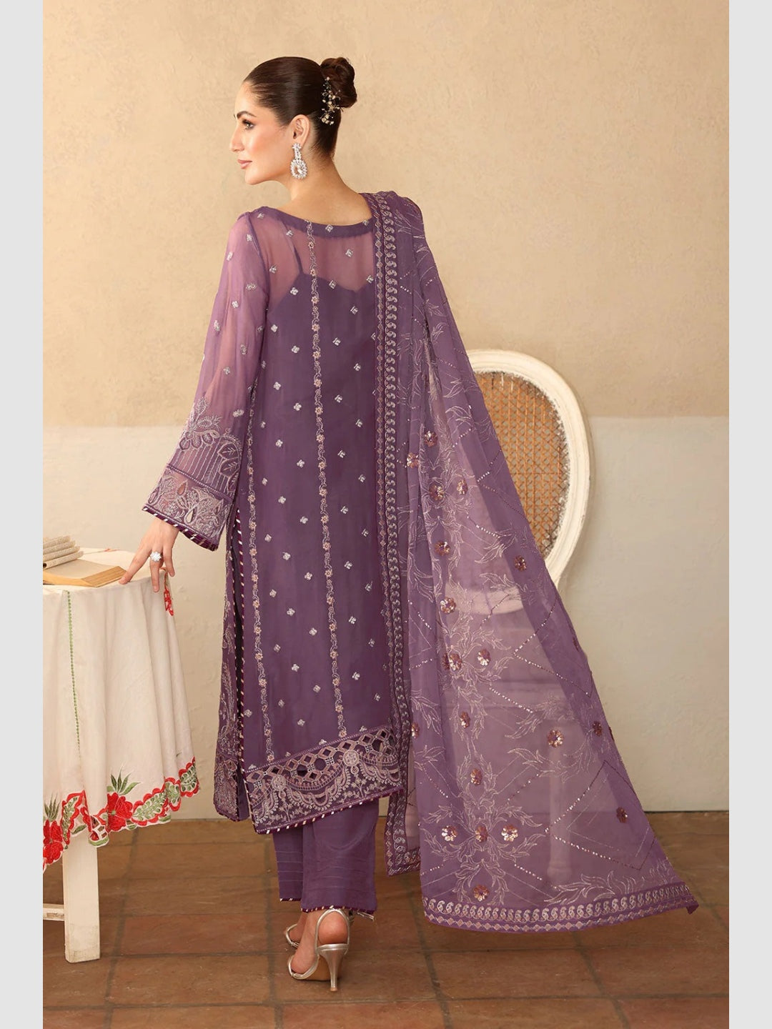 1. Top: Embroidered Premium Chiffon with Sequence