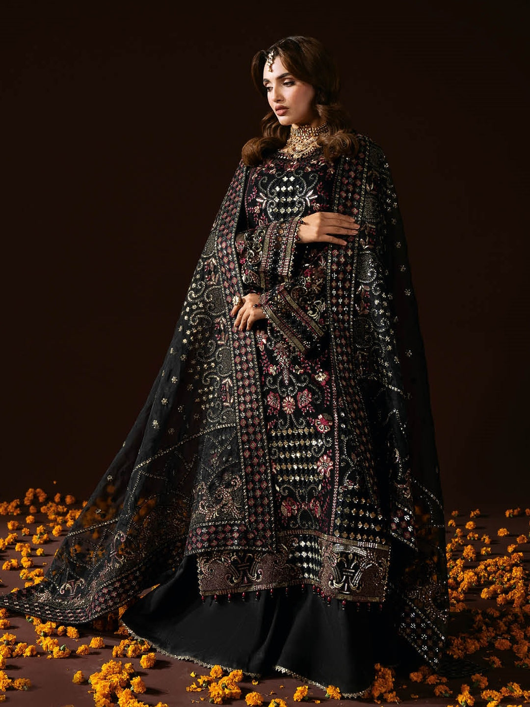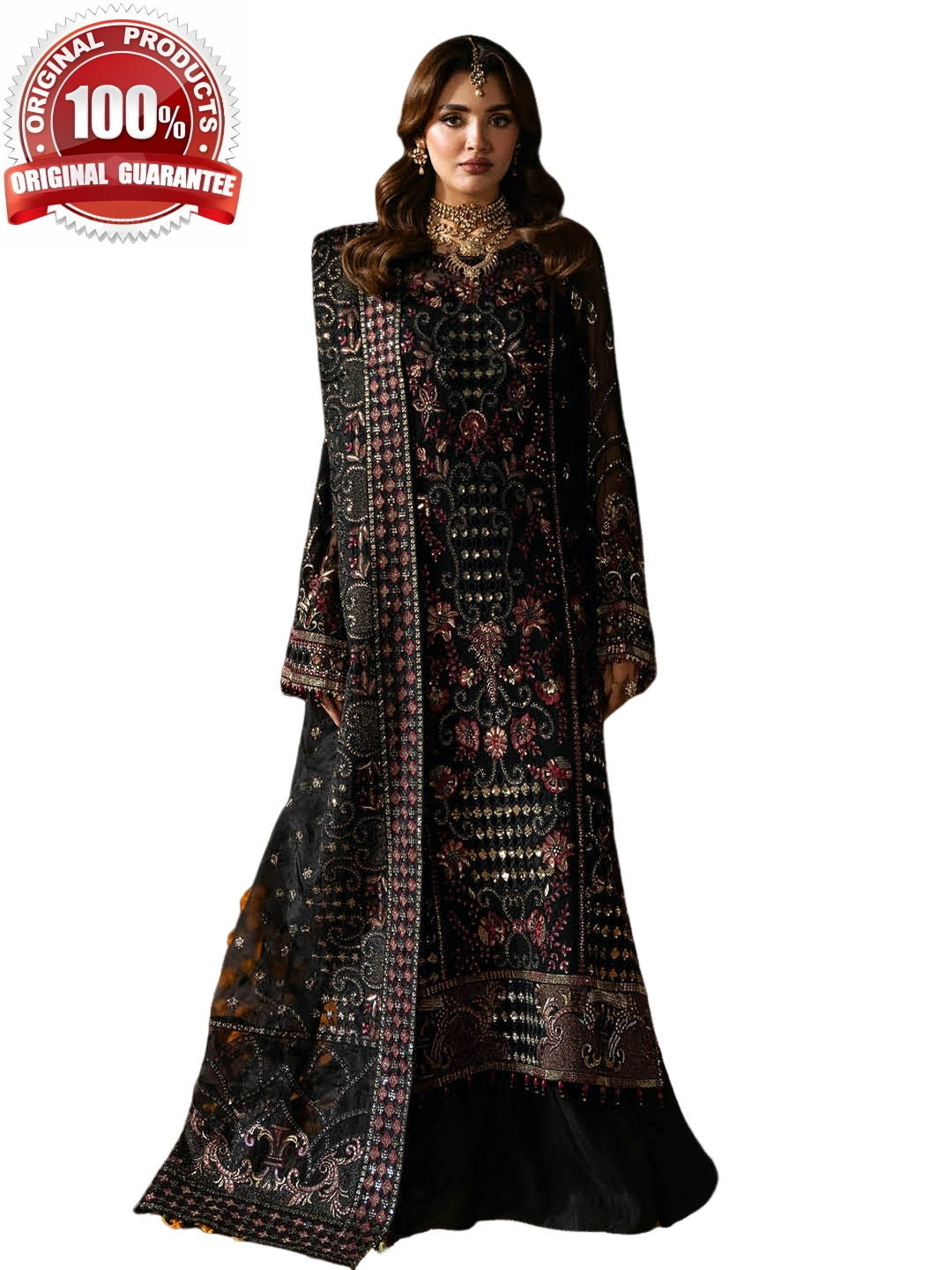 1. Top: Embroidered Premium Chiffon with Sequence