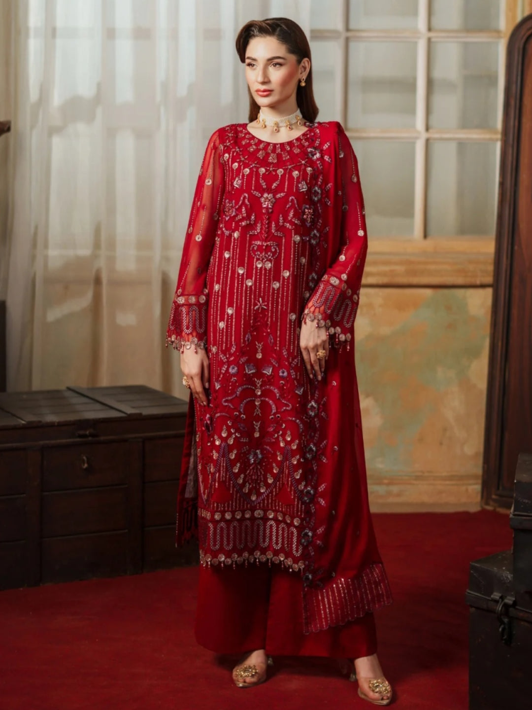 3. Dupatta: Embroidered Chiffon