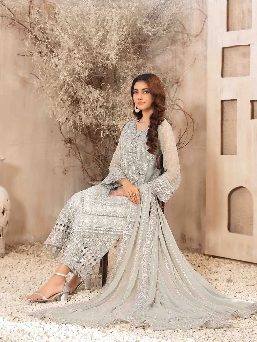1. Top: Embroidered Premium Chiffon