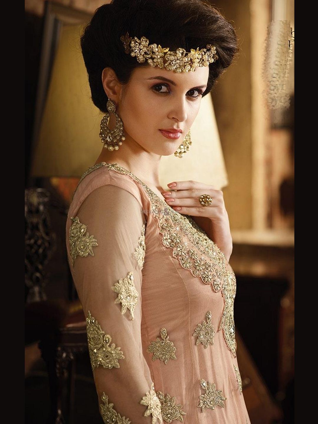 1. Top: Embroidered Net with Satin Inner