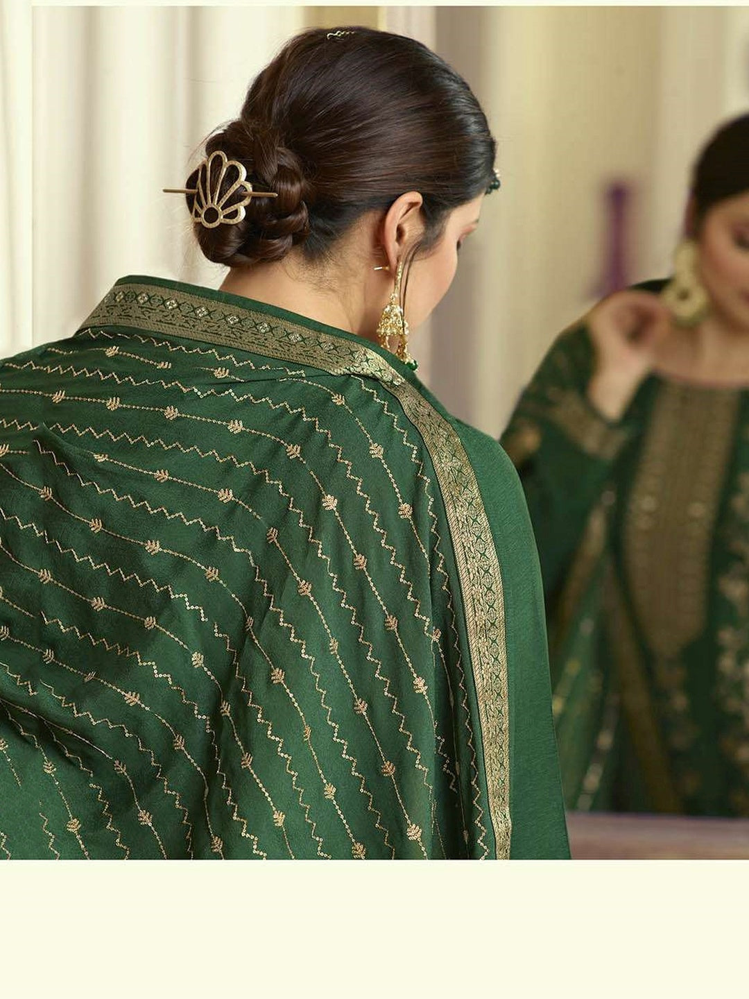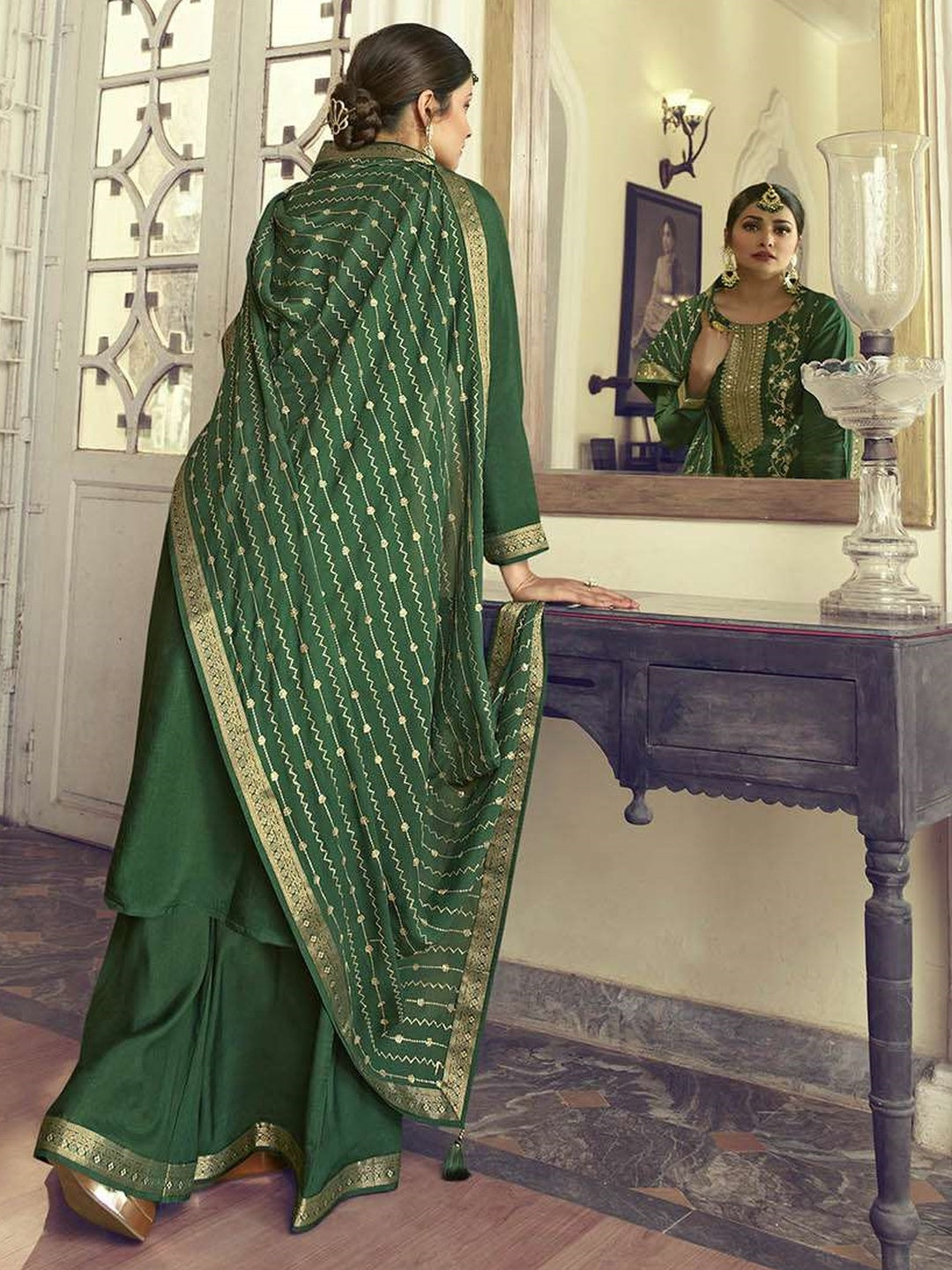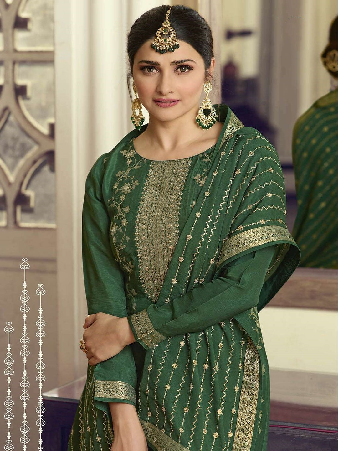 Embroidery on Jacquard Salwar Kameez