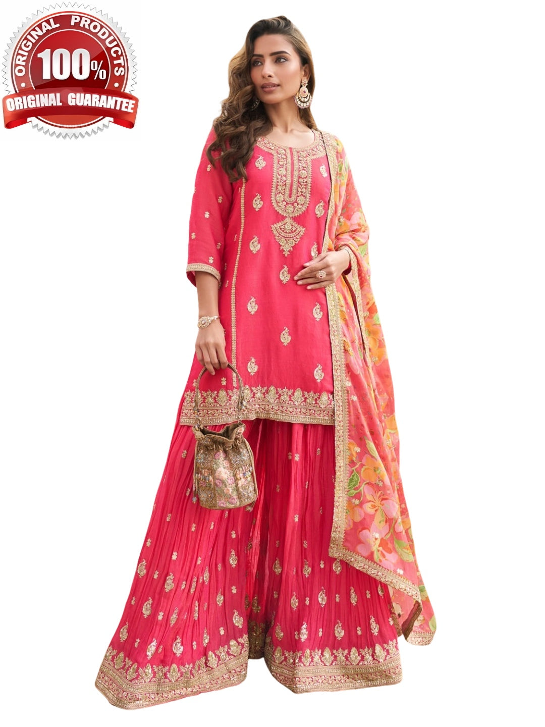 1. Top: Embroidery & Hand Work on Jacquard Silk