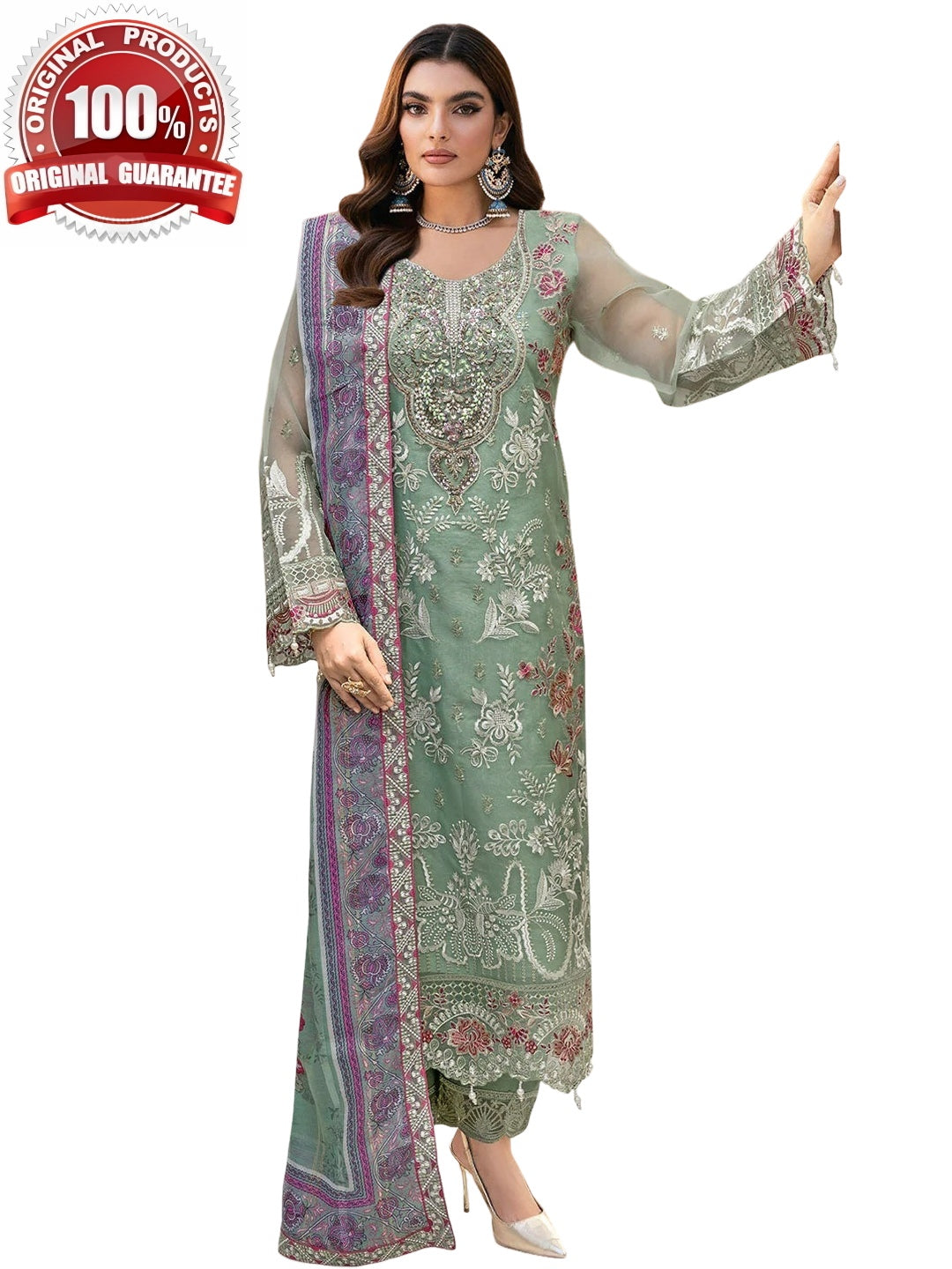 1. Top: Premium Organza Embroidered with Sequences