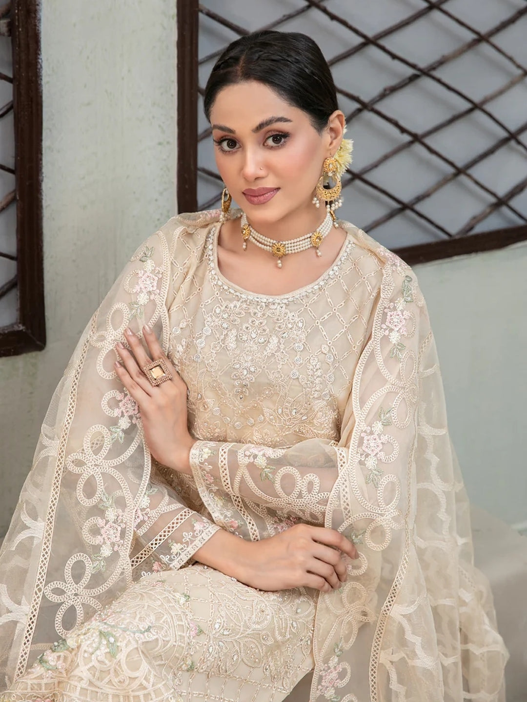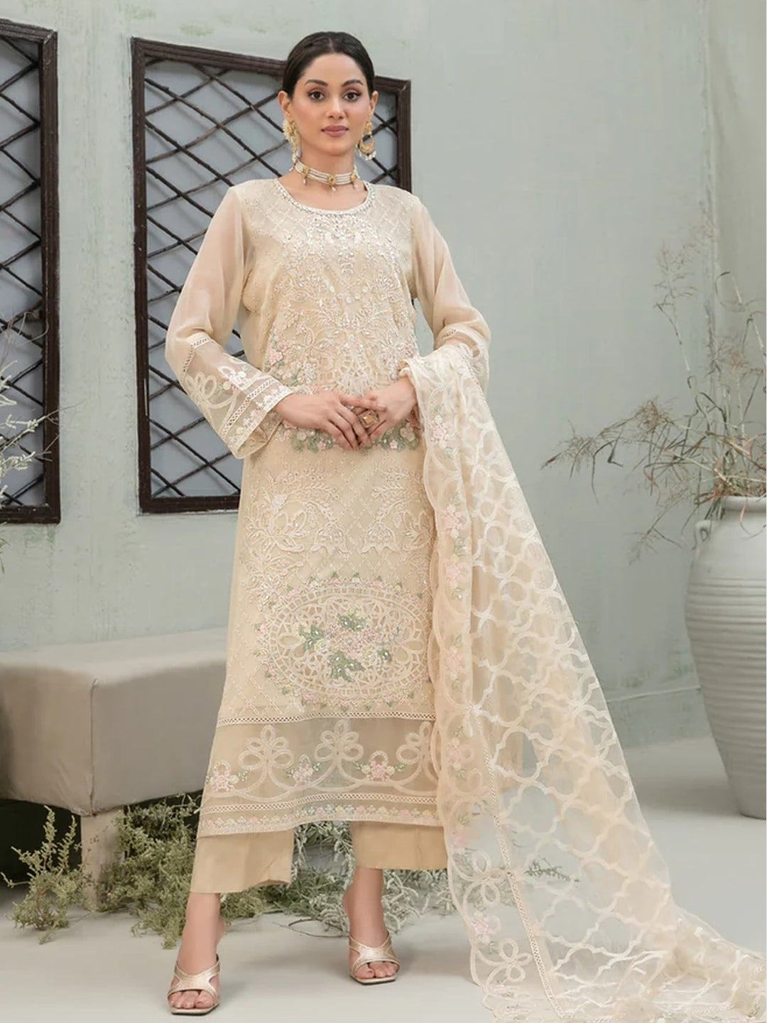 1. Top: Embroidered Premium Chiffon